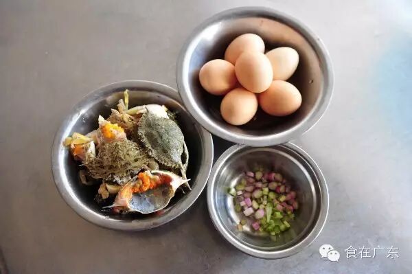花蟹500克,鸡蛋6只,短葱榄10克。