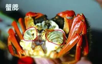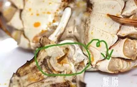 除了烹饪之前要仔细清洗,端上桌的螃蟹也要注意,例如蟹胃、蟹心、蟹肠……等部位,由于这些脏器都比较脏,还是大寒之物,对身体无益,不能入口。