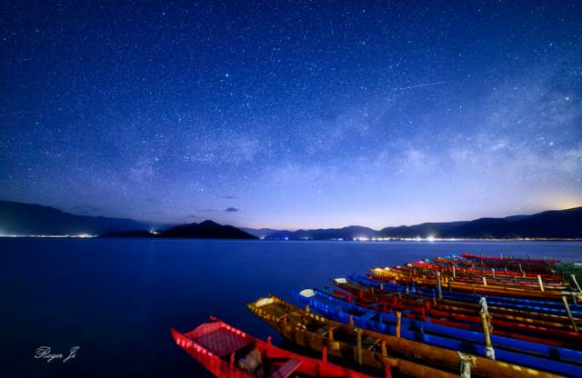 云南是高原地区,泸沽湖作为难得的低海拔区域,作为幽静的世外桃源,是拍摄星空的绝佳好地。但是要避开泸沽湖的热闹地方,在没有人造灯光、光污染的时候拍摄。