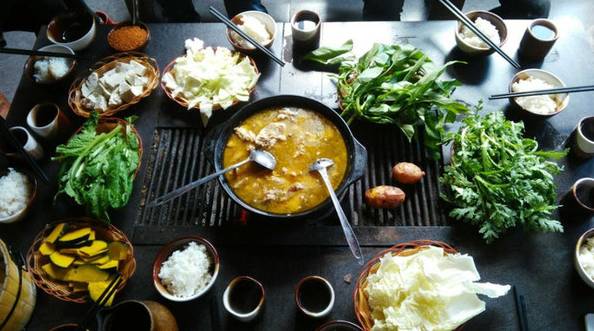 大家到了泸沽湖,可以尝试一顿火塘美食,中间是火锅,四周是烧烤。火锅有土鸡火锅、腊排骨火锅等,烧烤可以试试云南的野生菌,火塘烤出来的菌子非常鲜美。