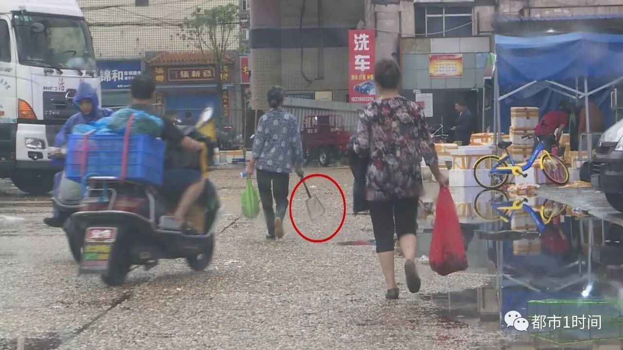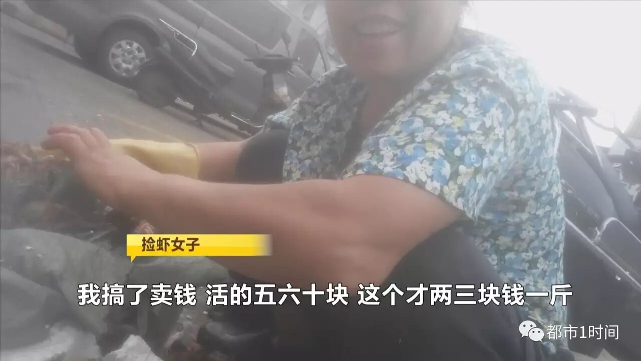 这名拿着兜网的绿衣女子,此时手中的塑料袋中,已经收集了不少死虾。记者向虾商了解到,这些早市上的“捡虾客”,在回收虾子后,就会倒手转卖出去。