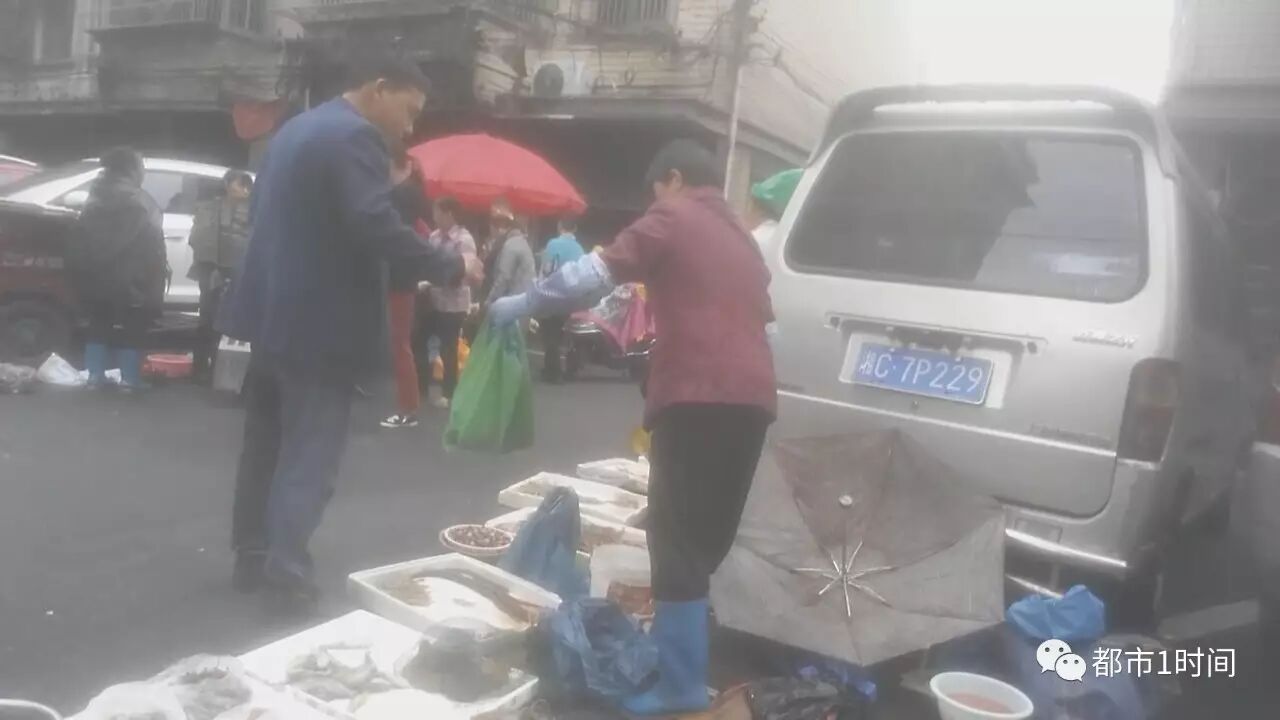 这名红条衣男子在购买了死货后,又前往其它商家购买了食材,随后将这些食材放到了一台牌照尾数为38的黑色小车上,离开了现场。记者一路跟随,发现最终,该车来到了长沙汽车东站附近,并把死水产送入了一家“浏阳蒸菜馆”内。