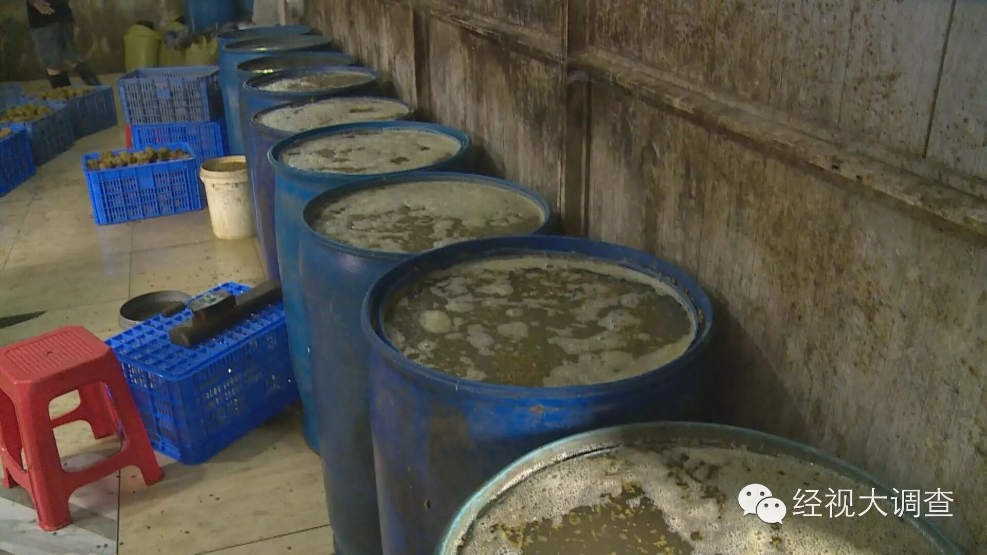泡酸菜的水池浑浊不堪 飘满白色的杂质