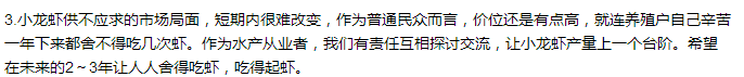 关注过小龙虾的朋友一下就会明白,随便点一份小龙虾(一般是2斤,规格7-8钱的虾),少则一两百多则三四百,对于我们这类水产小兵确实有点贵。加上刚好碰到今年这个水产灾年,钱包不鼓,所以虽然想为小龙虾这个网红在终端消费上加一把劲,真是心有余而力不足。其实细想一下,目前小龙虾还是属于供不应求的市场局面,我觉得水产从业者想为这个品种做贡献时,与其在饭馆和食客抢虾吃,不如花更多的时间和精力想办法拉动它的产量。