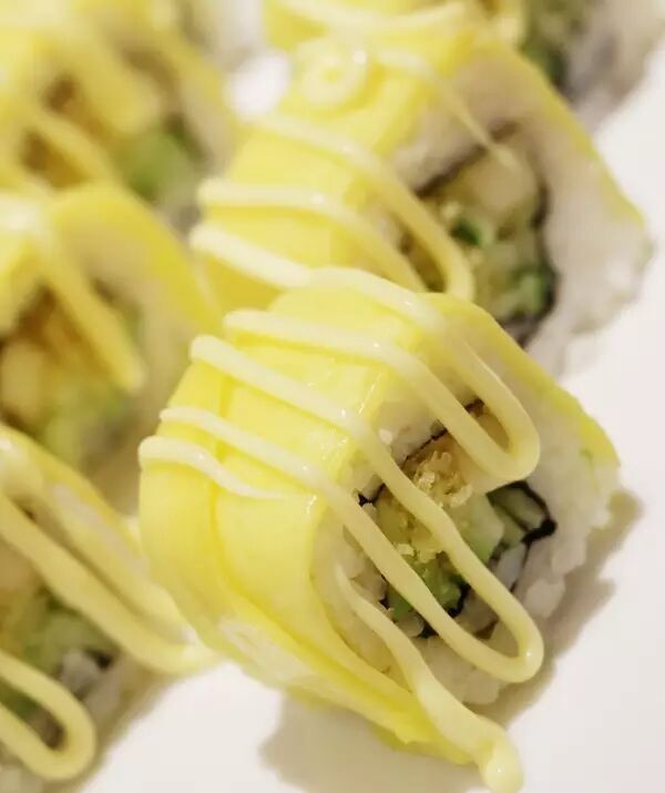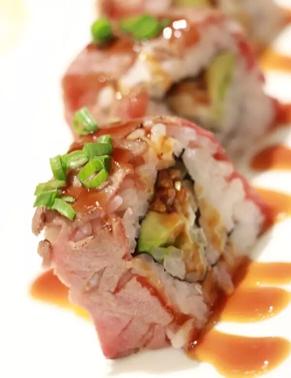 美式寿司,充分将牛油果和寿司混搭起来,鱼旨增加了水果卷和雪花牛肉卷。由