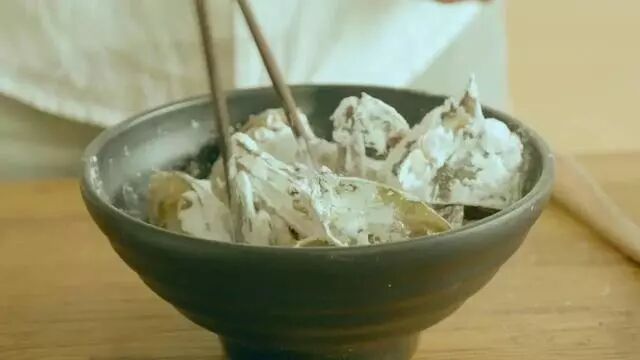 在腌制好的螃蟹块上撒层淀粉,搅匀
