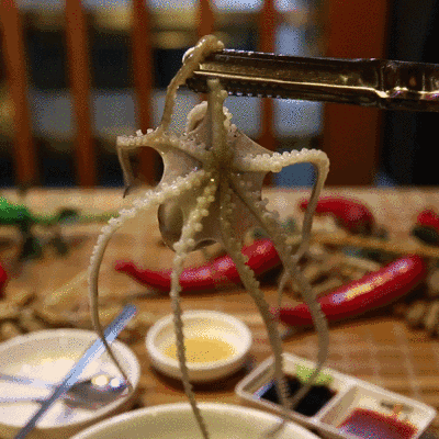 墨鱼是软体动物,有长长的触须和吸盘,还有墨囊,吃之前需要认真清洗。