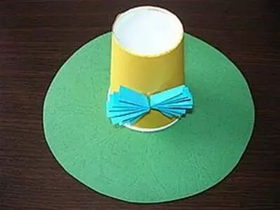 黄色手工纸装饰好的纸杯的外壁上