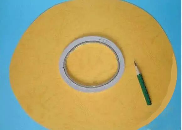 先拿双面胶来当道具,在剪好的圆纸上画个圆圈。