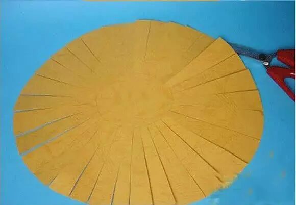 从边缘向中心剪裁,到画好的圆圈为止。