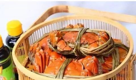 水烧至大滚时,将蟹肚朝天放入蒸笼中,上面可以放上洗净抹干的紫苏叶,蒸十五到二十分钟。