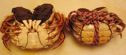 水蟹肉蟹和膏蟹:不肥的蟹子统称为水蟹,揭开蟹盖后里面肉少水多。肉蟹和膏蟹就是公蟹和母蟹,公蟹肉多母蟹有膏状的黄,所谓母蟹的黄就是母蟹的卵巢,膏蟹的膏质稠密,蒸熟后鲜红透亮,香滑可口,可谓是人间少有的绝味美食。