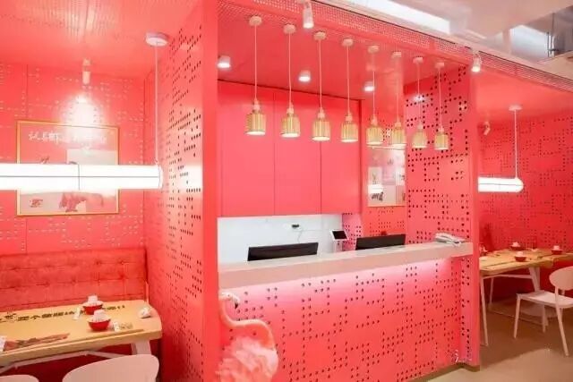 在空间设计上,粉色系为主色调,镂空的隔断使得整个店面视野更加开阔大气,每面墙每个小装饰都尽显粉嫩嫩的少女气息,就边店里的小哥哥小姐姐们也换上了粉粉的工作服。