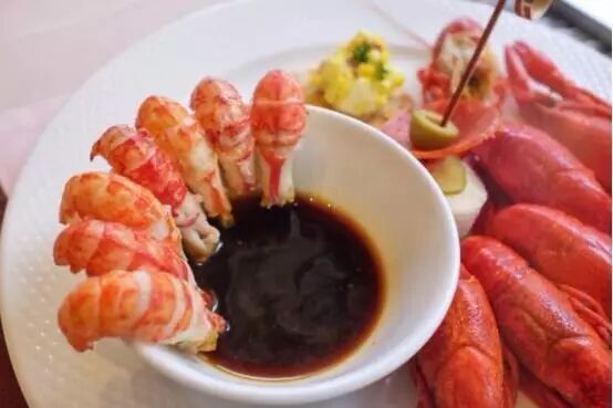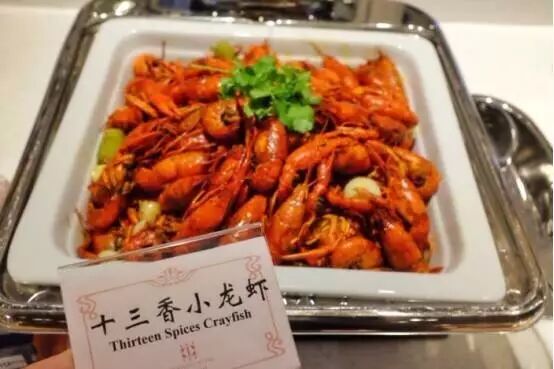 自助晚餐提供三种龙虾畅吃,分别是冰镇、十三香和椒盐。