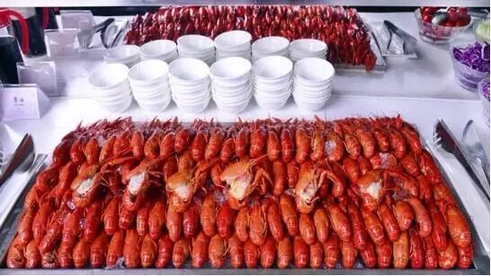 大家都在龙虾的味道和环境上下功夫,我们的老字号王宝和大酒店就在数量上下功夫,居然推出了小龙虾自助!