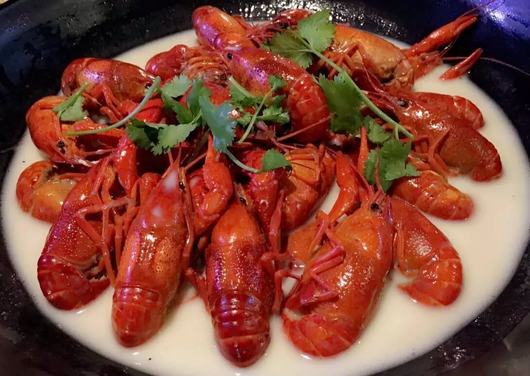 还有椰香口味。这种做法更有粤菜的风情,将椰汁与小龙虾一同焖煮,使之慢慢渗进肉中,吃起来椰香味很浓。当然,汤汁也很是香甜可口,千万别浪费了。
