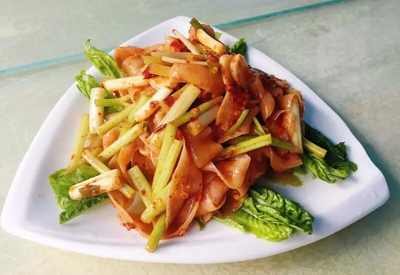他们家的凉拌鸭肠也很好吃,鸭肠的口感爽脆,混着芹菜的清香,味道丰富而浓郁。