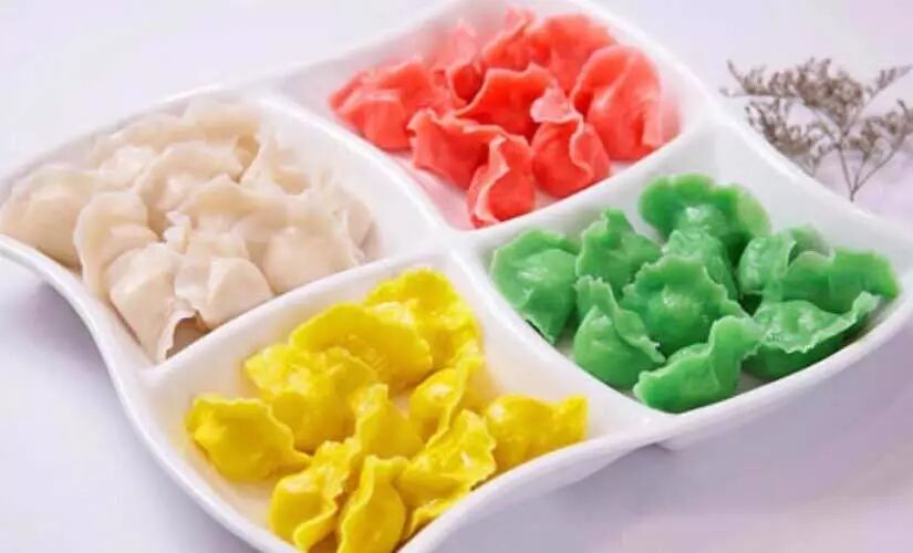 4、在制作饺子皮的过程中,不妨加入蔬果汁与粗粮豆粉等,既好看又好吃。