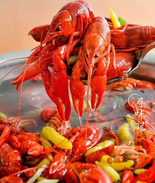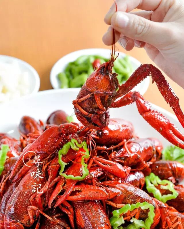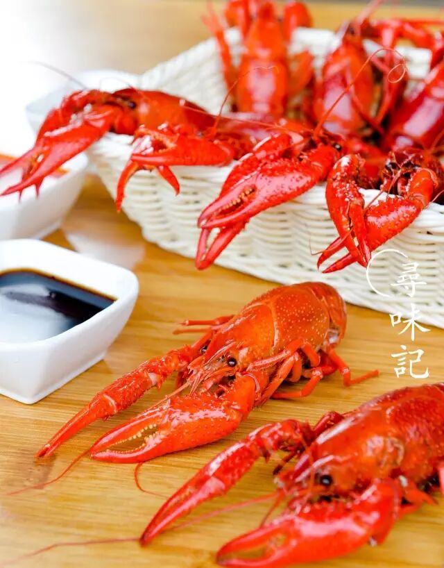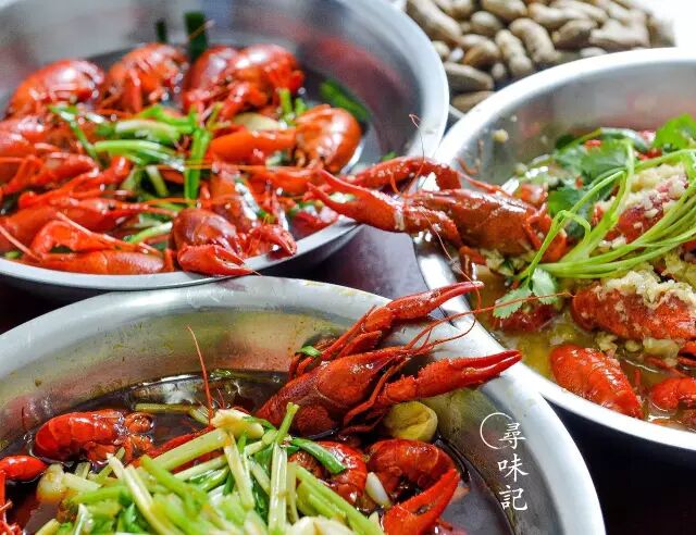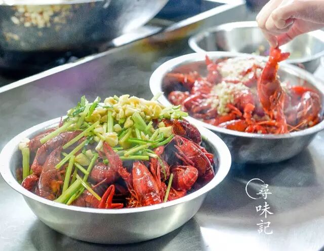龙虾,全部都来自淮安的金湖。据说这地方水域宽广、水质优良,所以产出的龙虾个大体肥、通体洁净、肉质细嫩。
