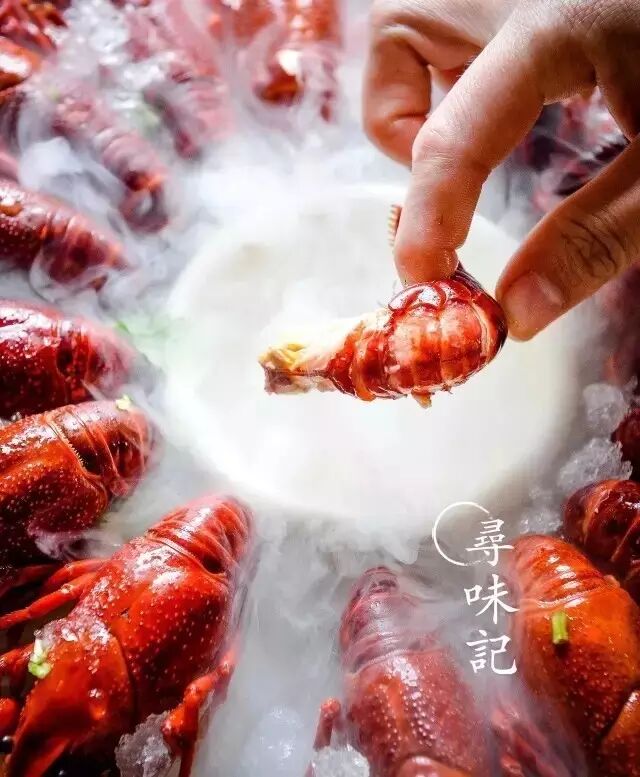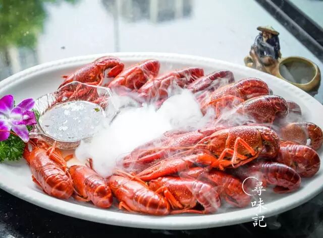 头一个上来的冰镇龙虾,个个大只,冒着雾气、裹着碎冰,独特的造型就已经要让人忍不住拍照发朋友圈了。