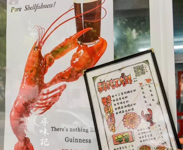 餐厅最抢眼系列便是各种龙虾,从进门店招上一只张牙舞爪的大龙虾,到店堂墙上各种新奇的手绘龙虾图,再到菜单上各式各样的龙虾口味。