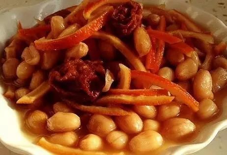 做法:1000克带皮花生、50克橘皮、米醋150克。先把花生和橘皮倒入砂锅内,加水适量,中火烧开一刻钟后,加醋、一匙盐、四只茴香,再改用小火慢煮。约至水快干,且花生酥烂时,再关掉火,丢掉橘皮。佐餐来吃。