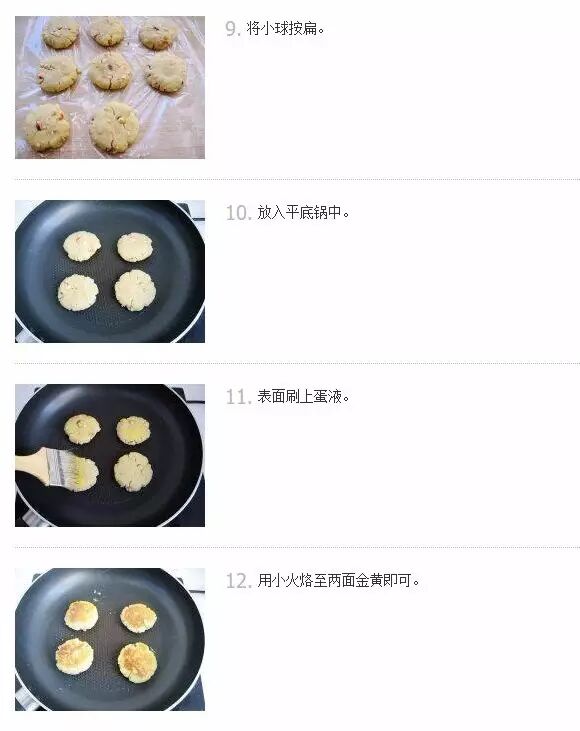4、用平底锅烙的时候要开小火,随时注意颜色。