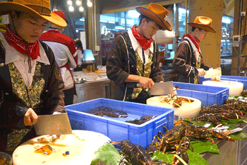 吃龙虾必抢巨无霸的钳子,比得上我手掌那么大!
