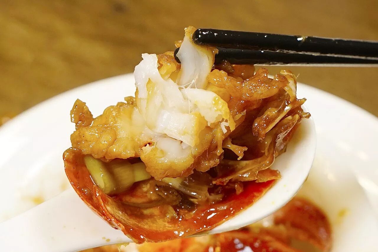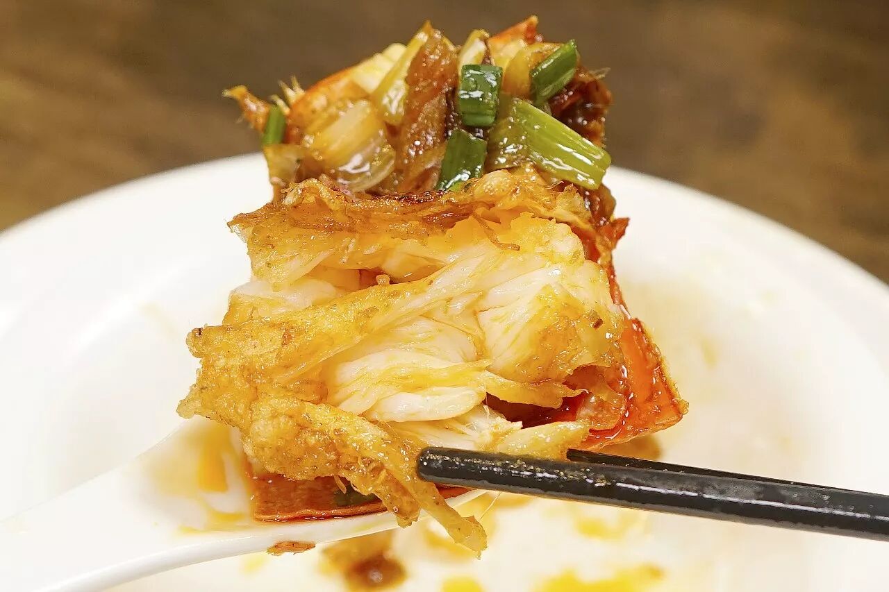 生焗的虾肉有点像咕噜肉一样,外面裹着一层酱汁,入口很温柔,就好像虾肉在拥抱你的舌头。