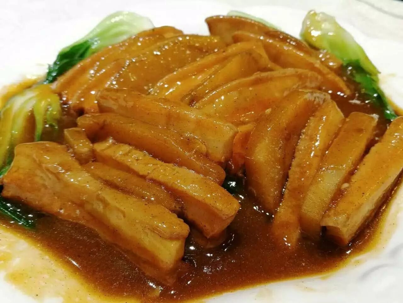 粉葛粉粉嫩嫩,完全没有渣滓,超级好吃!!!因为采用鹤山当地的粉葛,据说很有营养哦。选取优质的五花肉,切成薄片。两者一起吃下去时,与浓郁酱汁相伴入口,味味、气香、汁弄、肉嫩,鲜美且很入味、不油不腻、入口即化!五邑君告诉你哦,吃它的正确方式应该是:一块粉葛夹着一块五花肉吃哦!