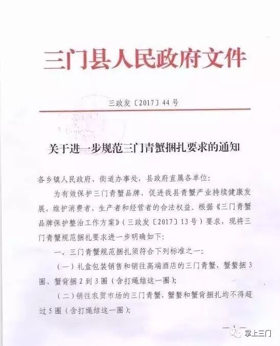 就在8月30日,三门县政府再次发文,进一步规范了三门青蟹捆扎要求。