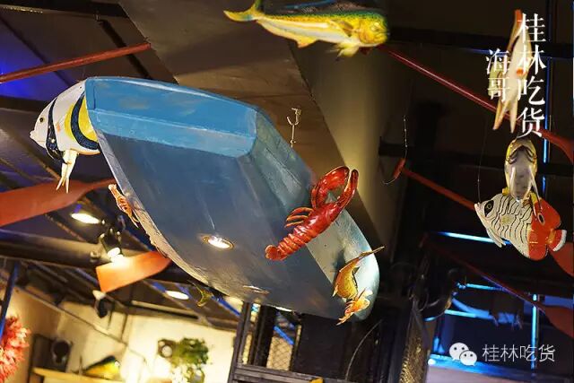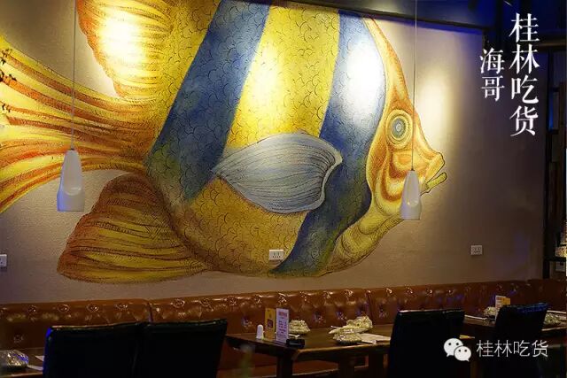 平常吃烤鱼都惯于在一些环境比较简陋的地方,而现在有了这个主题环境的地方,烤鱼什么的当然首选这里!三五知己约在这儿,吃条鱼,剥个虾,这种墙面涂鸦看着心情都感到瞬间舒适起来..