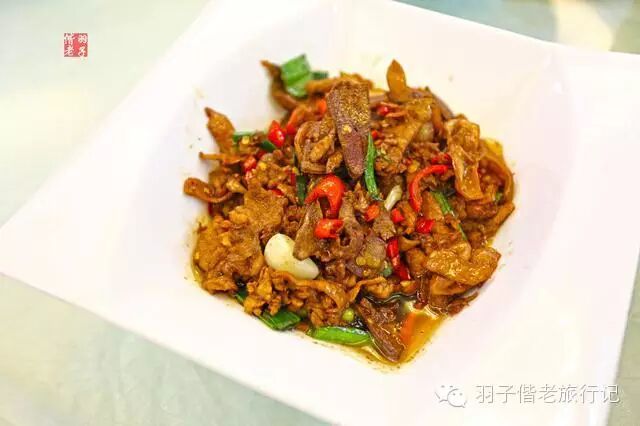 “一顿乱炒”这个名字把大家都逗乐了,这道小菜有猪肝、瘦肉和肥肠,一听到名字其实就想快快品尝里面有哪些食材,因为通常在我印象里,“一顿乱炒”就是炒的时候随便放,不管是什么都可以炒到一起。因此,“一顿乱炒”也是每个馆子的特色菜。