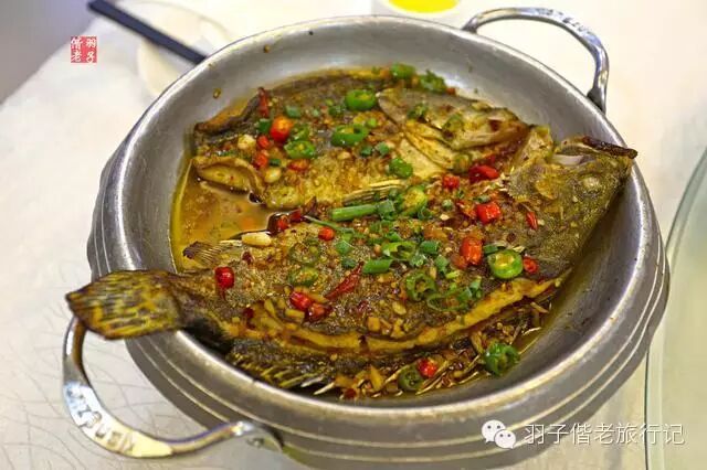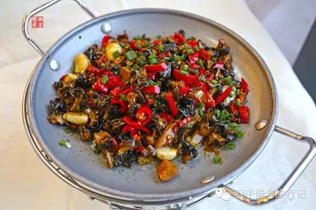平锅臭桂鱼,这道菜我不得不说,是我非常喜欢的菜。这和安徽一带的做法有点不同,特有的湘西做法,肉质纤维紧密,像淡味咸鱼。对于第一次见到臭桂鱼的人,可能会担心表皮发出似臭非臭的气味,其实,一点都不用担心,这绝不是菜变味而发出的异味,这是这道菜独有的风味,当你吃一口后,会惊讶的发现非但无臭,反而鲜香无比,越发滋味,回味无穷。强烈推荐!!!