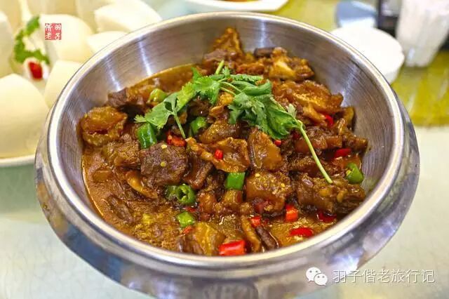 平锅牛三鲜,三鲜包括牛肚、牛腩、牛筋,尝一口,牛肚够劲道,牛筋牛腩香软经嚼。