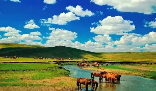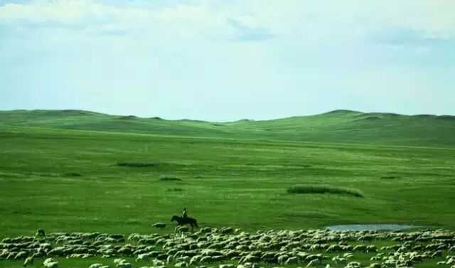 呼伦贝尔大草原像是一块天工织就的绿色巨毯,绿波千里,一望无垠。而绿草与蓝天相接处,牛羊相互追逐,牧人举鞭歌唱,处处都是“风吹草低见牛羊”的景致。