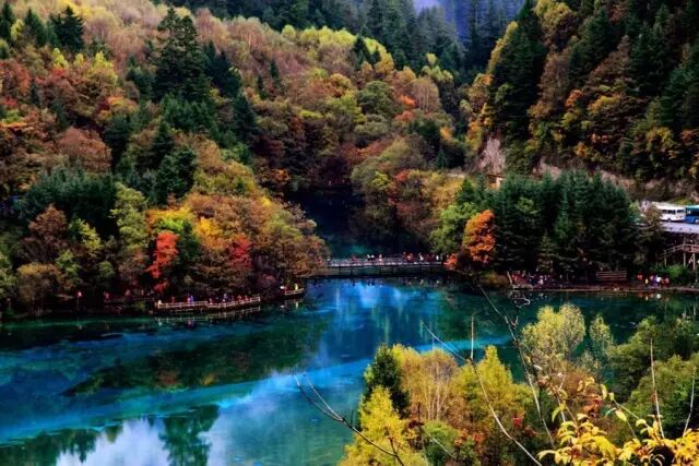 九寨沟最佳旅游时间为每年的9-11月,五彩斑谰的红叶,彩林倒映在明丽的湖水中。缤纷的落英在湖光流韵间漂浮。悠远的晴空湛蓝而碧净,自然自造化中最美丽的景致充盈眼底。