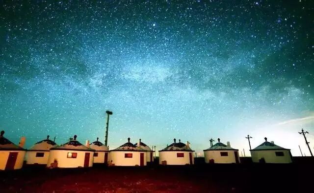 草原的夜晚十分美丽动人,没有城市的高楼大厦阻挡,星空广阔无垠,格外闪耀璀璨。如果你住在蒙古包,便可以随时走到草原上,感受那种天地无限广阔的快意。