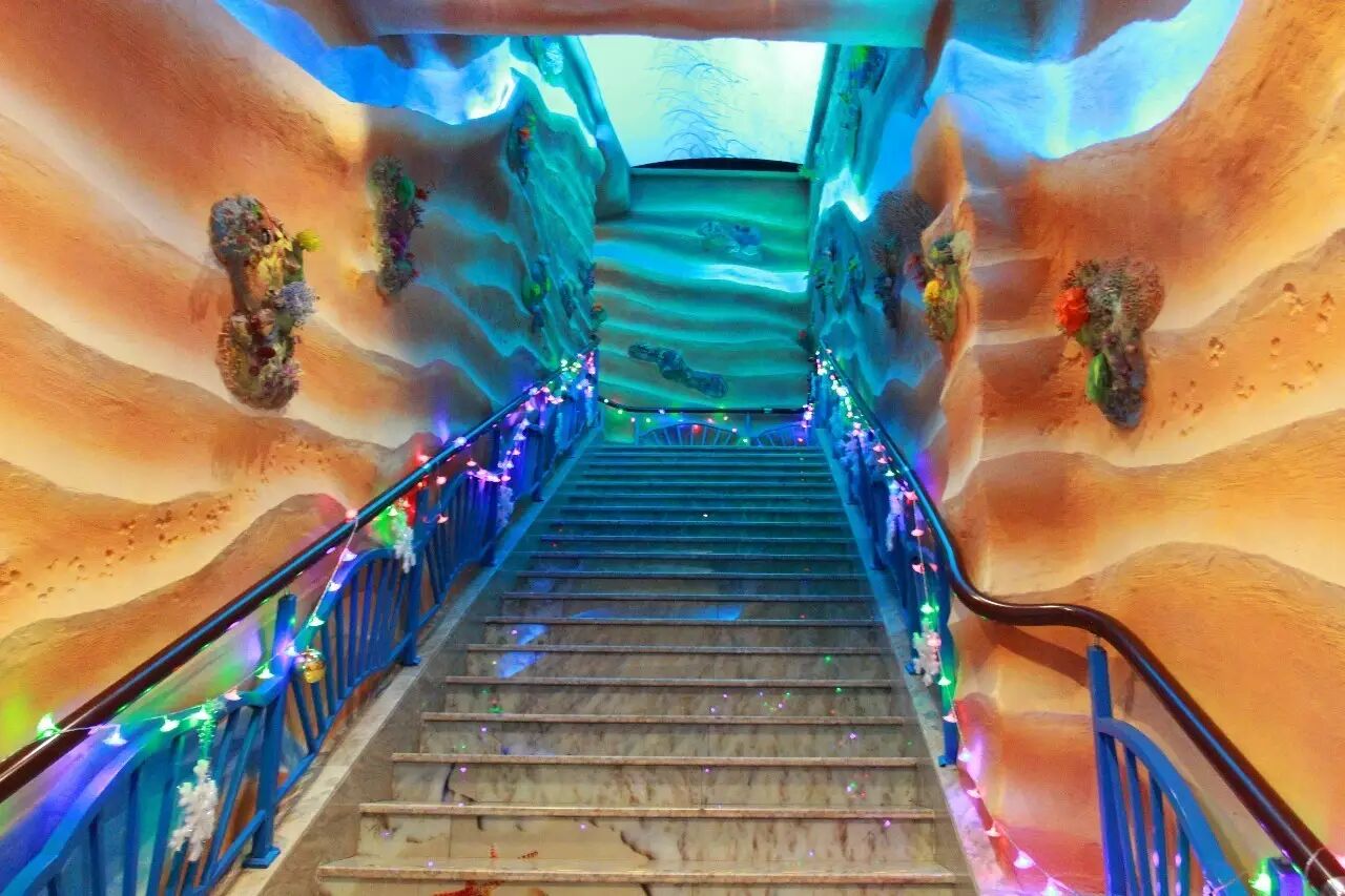 穿过海景隧道,就开始了海洋之旅!到达二楼餐厅,。