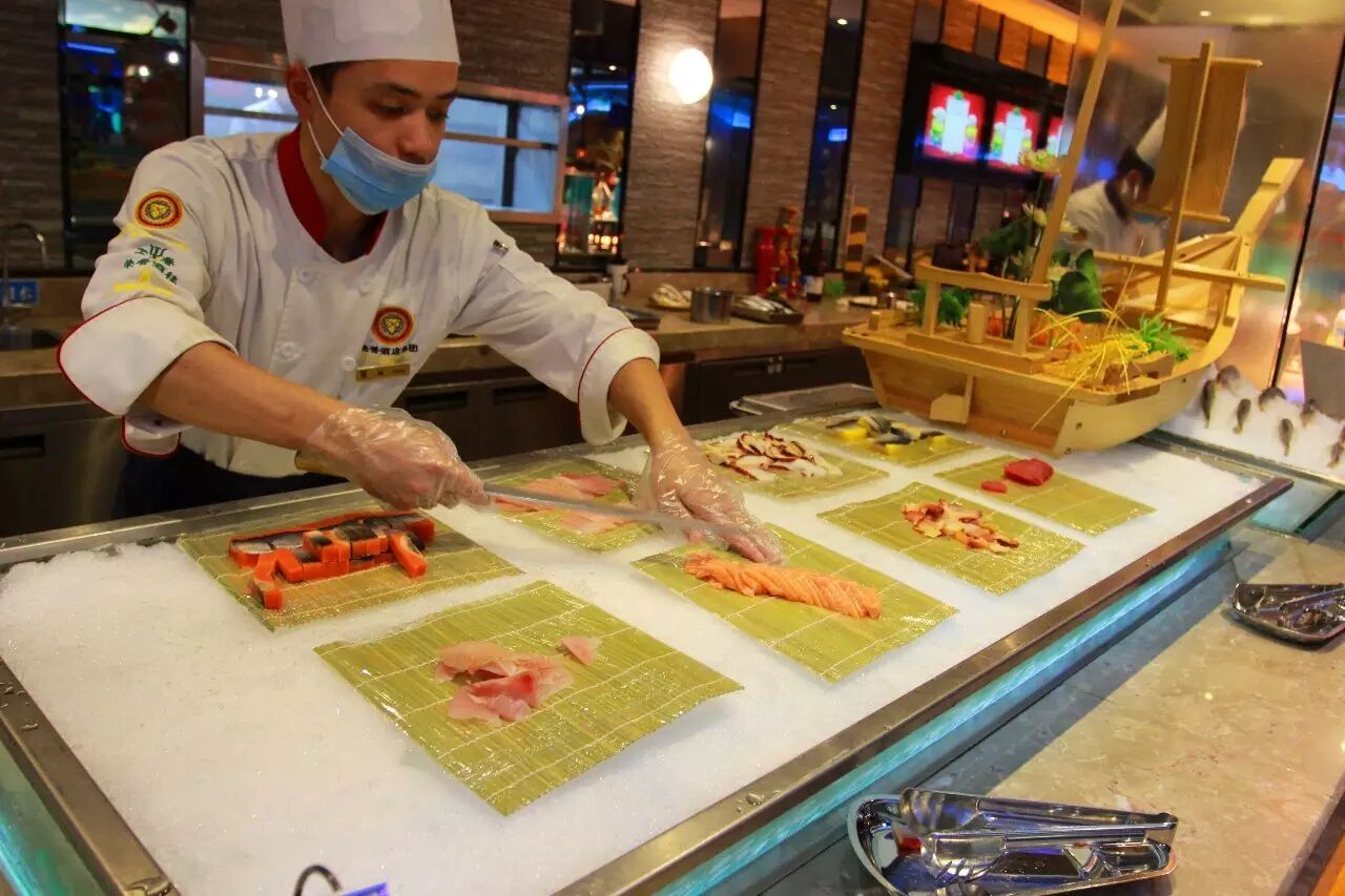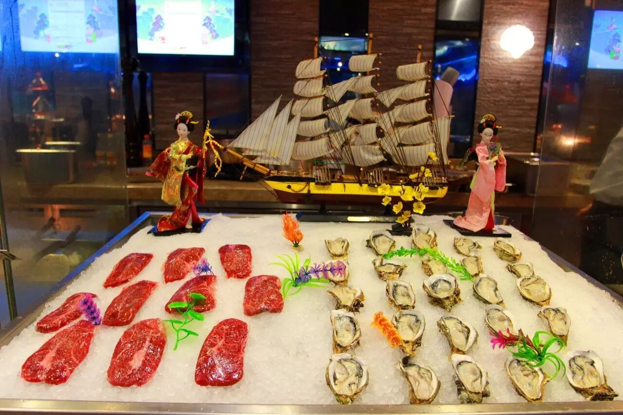 还有新鲜的刺身!寿司,绝对让你吃爽。而且厨师总是不间断补量,控制不住自己呀,放开吃吧!