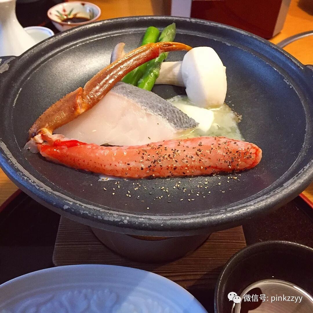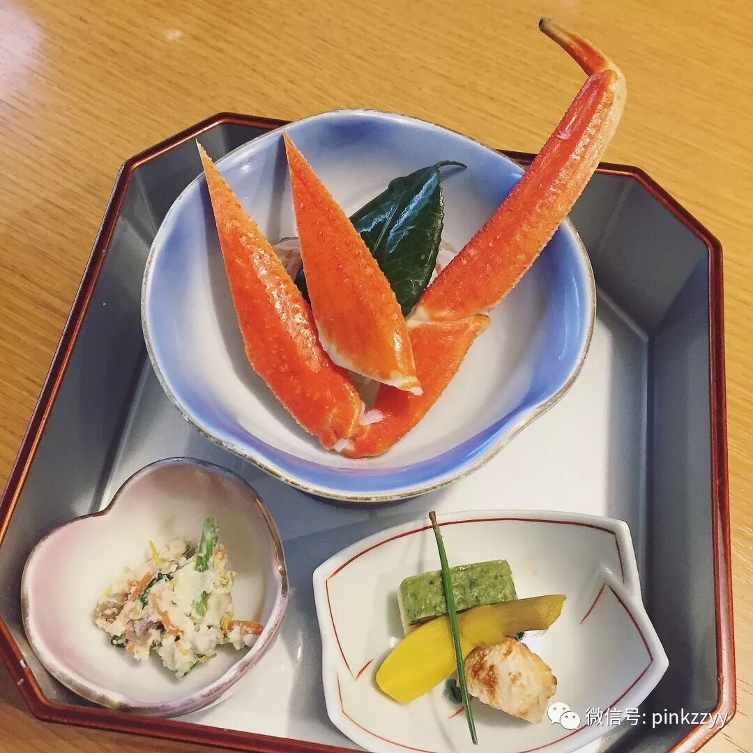 好!落座了。好像都是小包间,氛围还是可以,起码吃的清静。好像这种日式料理店里的女服务员都是穿和服的,说话也柔柔的,然后你点单的时候都是微笑聆听,好甜的。看了一下菜单,有今日新鲜运来的蟹们,但是有点贵(默默微笑),还是点了个普通的套餐。