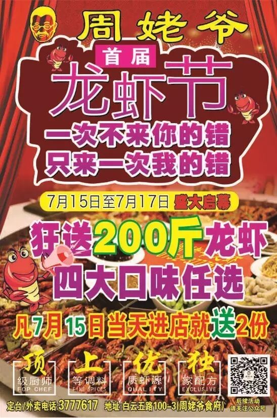 一、速度!无任何消费限制!7月15日当天!只要在下午5点到晚上12点凑够4人及以上到店开台即送2份小龙虾(2斤)!200斤送完即止!