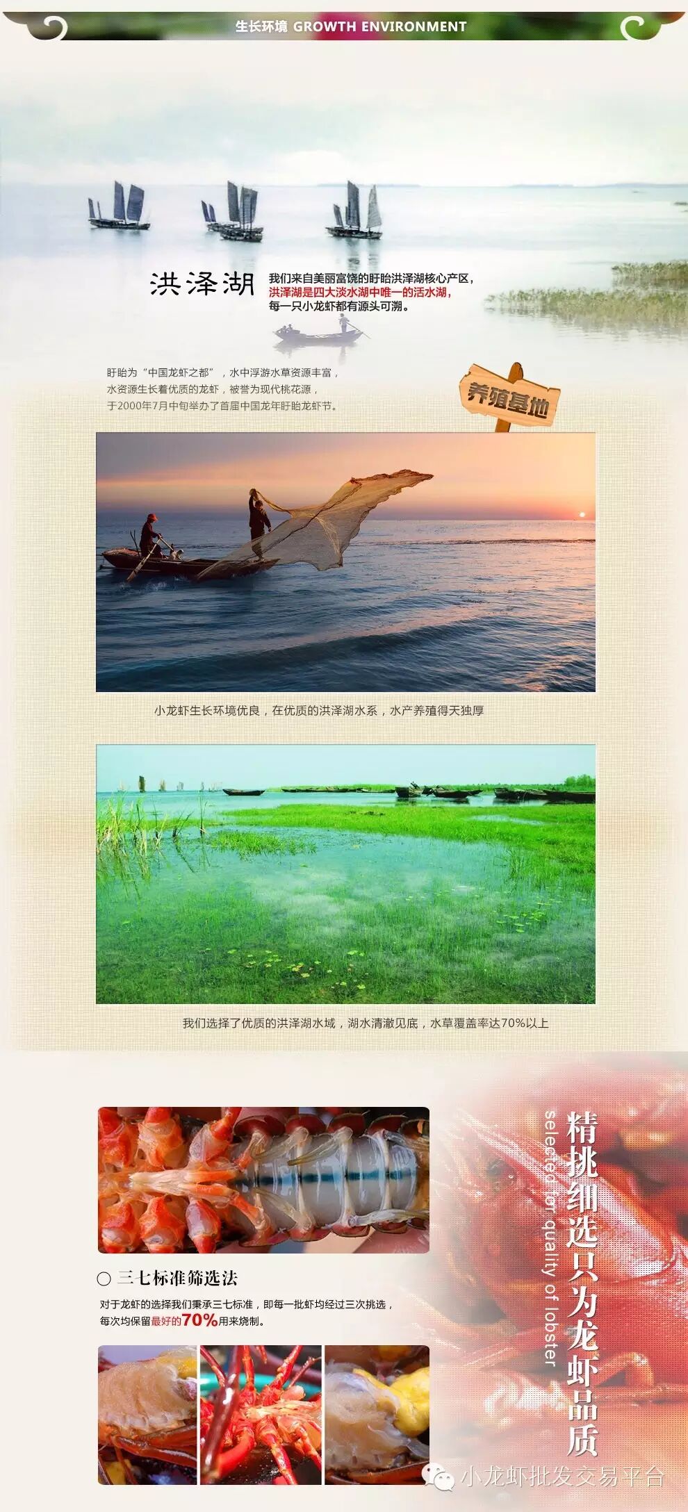 本公司经营小龙虾已有10多年,供货基地30多家,所售小龙虾,品质优良,规格齐全常年供货以诚信为宗旨。现已有几十家麻虾馆、酒店、烧烤店、与本行长期合作生意火爆。真诚希望与做小龙虾业务的朋友合作发展。
