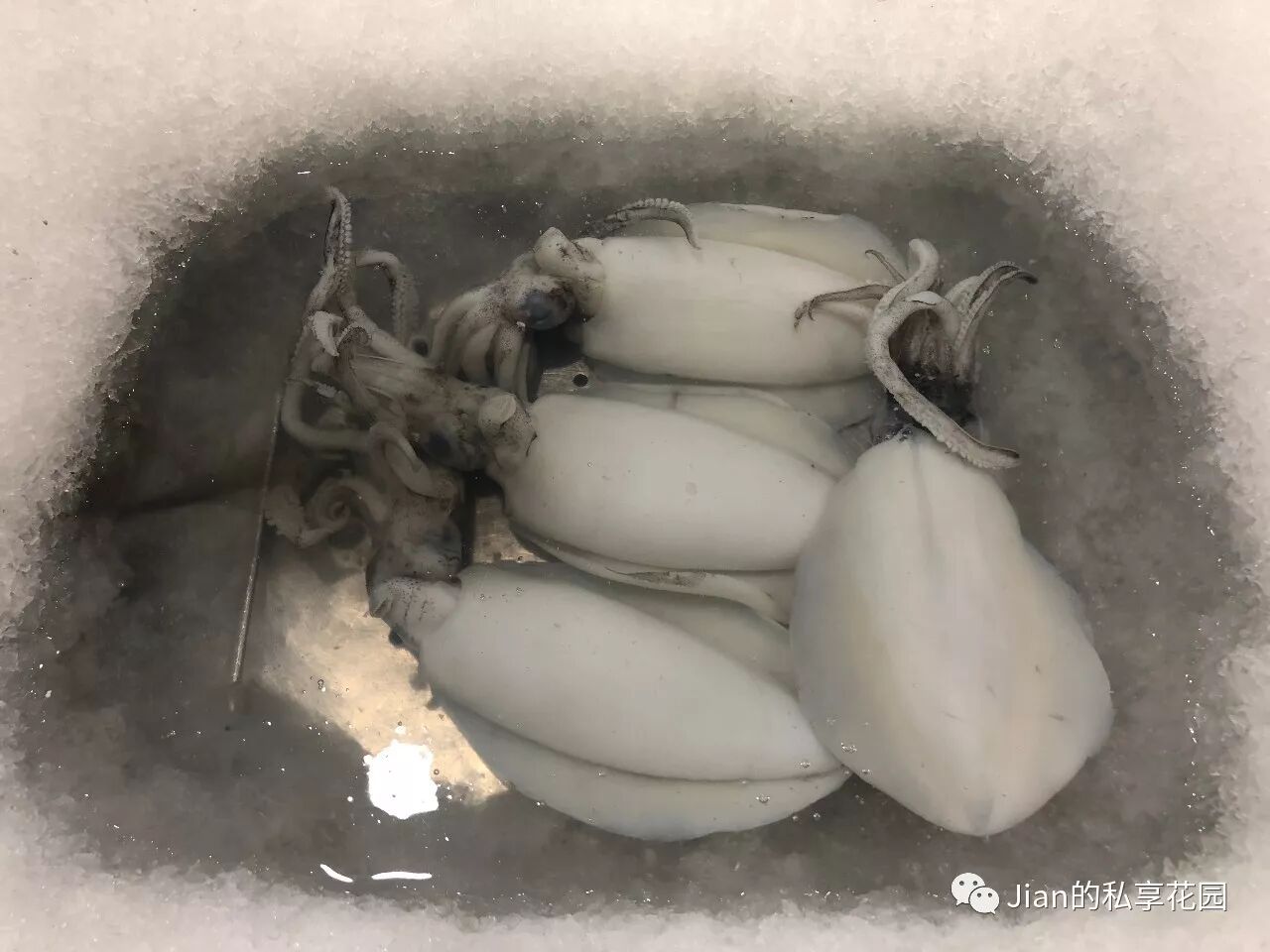 用冰砌了个池子卖墨斗鱼。