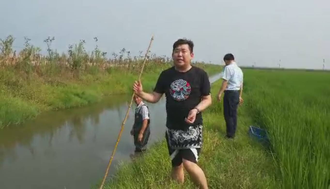 小强来到稻田间,观看虾农捕虾的过程。