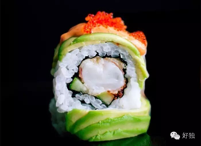 传统的寿司,是鱼生和醋饭的创意组合,带给人们无穷的口感刺激。当年寿司传入美国,一开始并不盛行,毕竟美国人对刺身寿司并不习惯。幸好天才师傅对其进行了改良:以牛油果代替了刺身,中间加入蟹肉和青瓜,最后把紫菜卷在中间做成反卷。