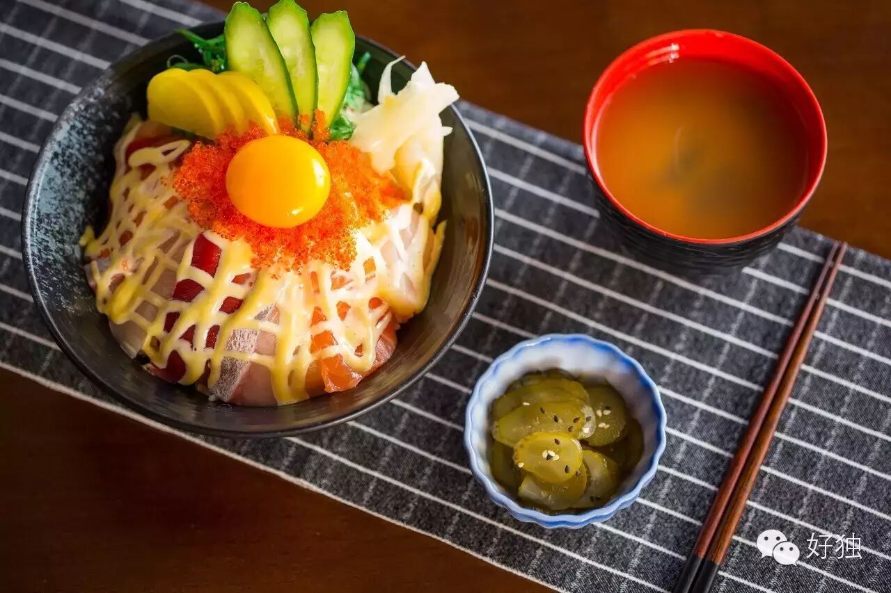 如果是情侣二人到店,不妨给亲爱的她点一份王后盖饭,不同的刺身不一样的做法,传达你满满的爱意。