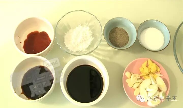 ▶然后我们把酱汁调好,在小碗中加入一勺蚝油,一勺生抽,少许的盐,少许胡椒粉,半勺番茄沙司,一勺生粉拌,最后加入适量的清水搅拌均匀。