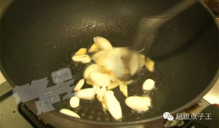 ▶把焯过水的鱿鱼放进去,继续翻炒一分钟。