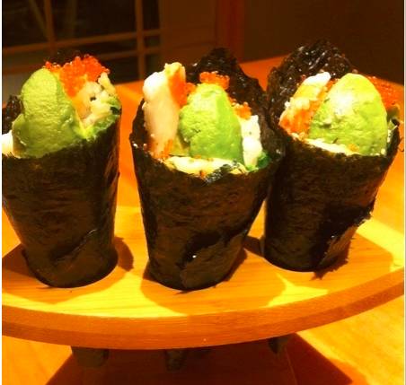 10 做好的“牛油果手卷寿司”。有着熏三文鱼的香味和牛油果的奶香。